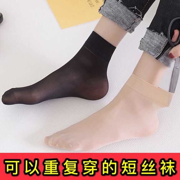 20 Double fit anti-hook wire Short Sox Summer ultrathin pair Pair Socks Woman Light Mouth Invisible velvet Black Flesh Color Short Silk Socks-Taobao