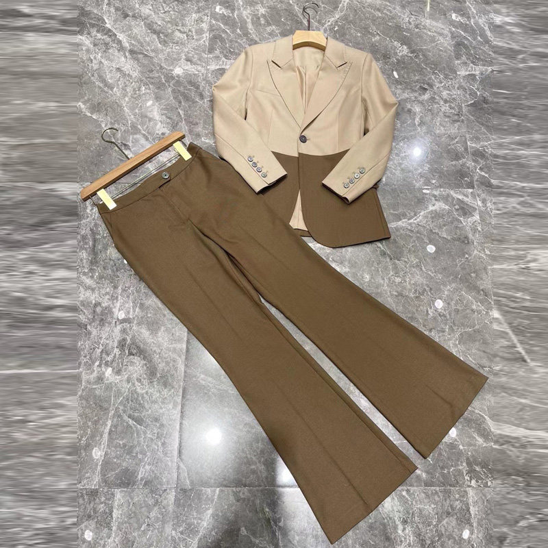 High-end design sense wool blend stitching suit jacket women's micro-flare pants high-end suit suit