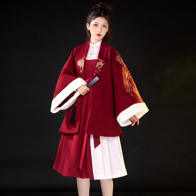 The Han-style Han-clothing female improved embroidery clothes Chinese wind dress autumn and winter warm and winter elements