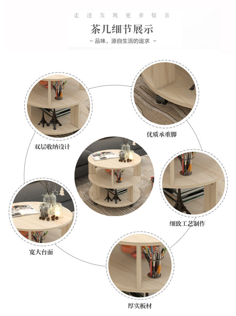 Coffee table simple modern Nordic round creative living room storage bedroom bedside cabinet side table assembly balcony small table