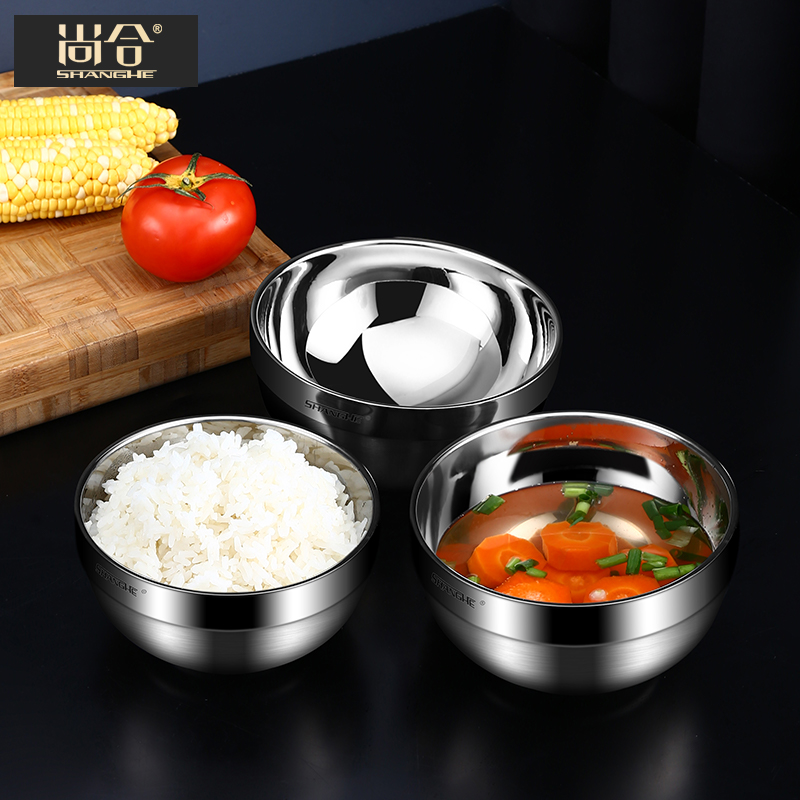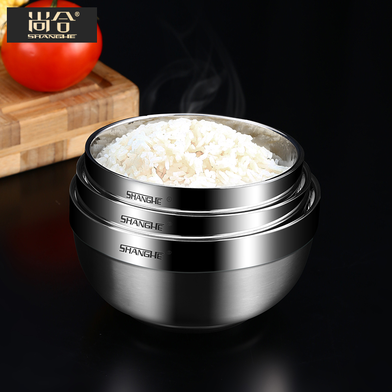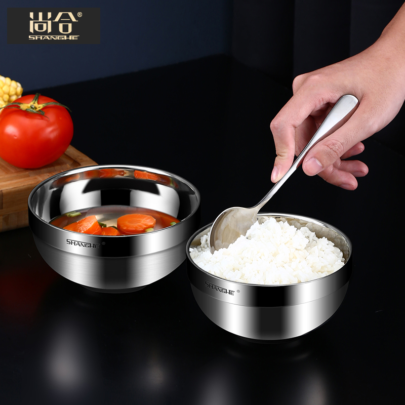 304 stainless steel bowls Children anti-burn bowls Home Double heat insulation adult rice bowls Port-style Cafeteria Noodle Soup Bowl
