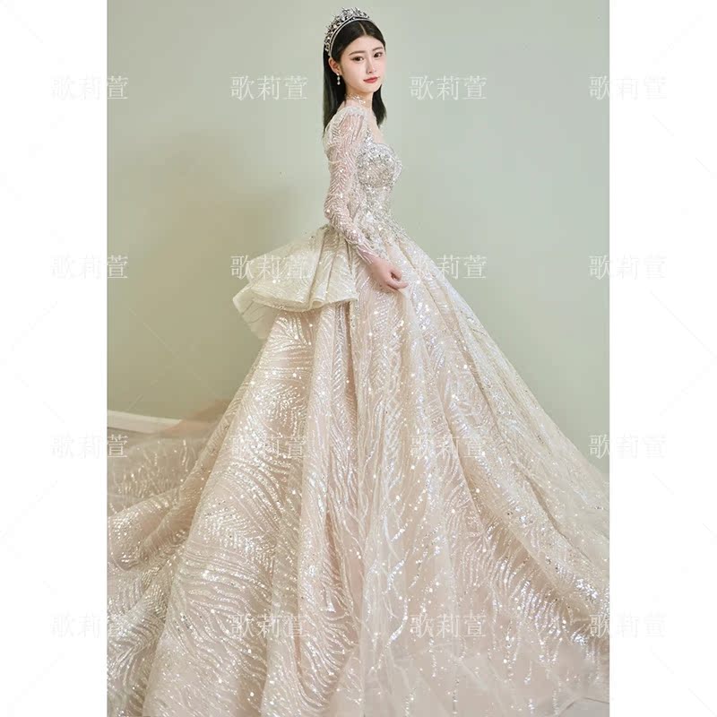 Long sleeve main wedding dress 2022 new bridal style reworking little sub advanced texture starry sky large trailing summer light