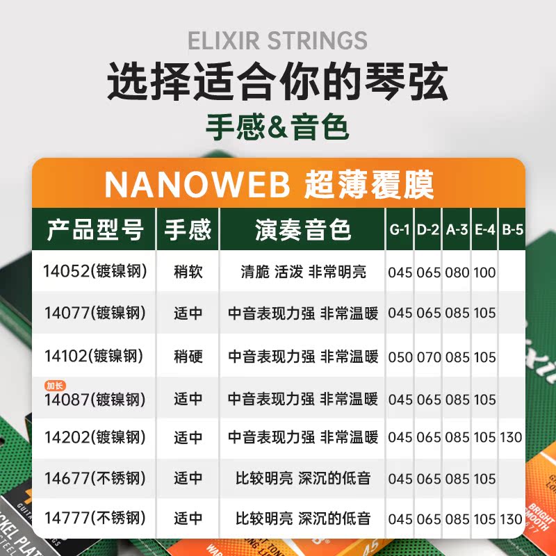 14052 Nickel-plated steel film (4-string specification 045-100) 14077 Nickel-plated steel film (4-string specification 045-105) 14677 Stainless steel film (4