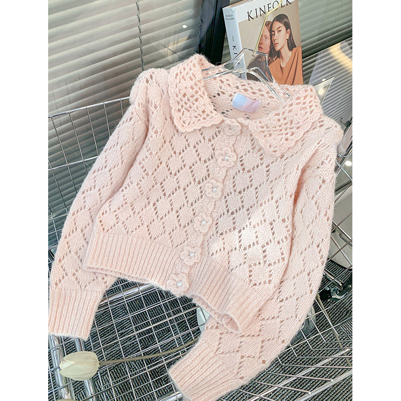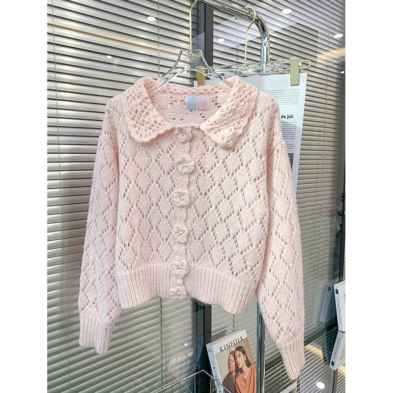 WAVE ultra-looking pink sweater Don't make an old sweet knit cardigan soft glutinous jacket female superior blouse
