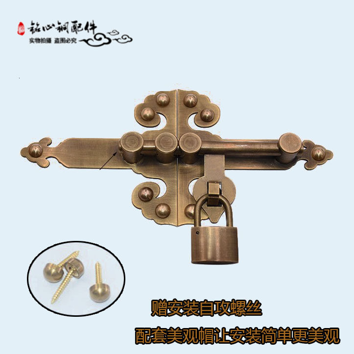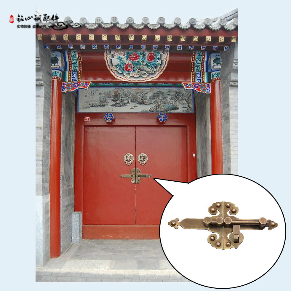 Chinese antique pure copper gate door bolt surface-mounted latch retro courtyard wooden door latch old-fashioned door lock all copper door buckle