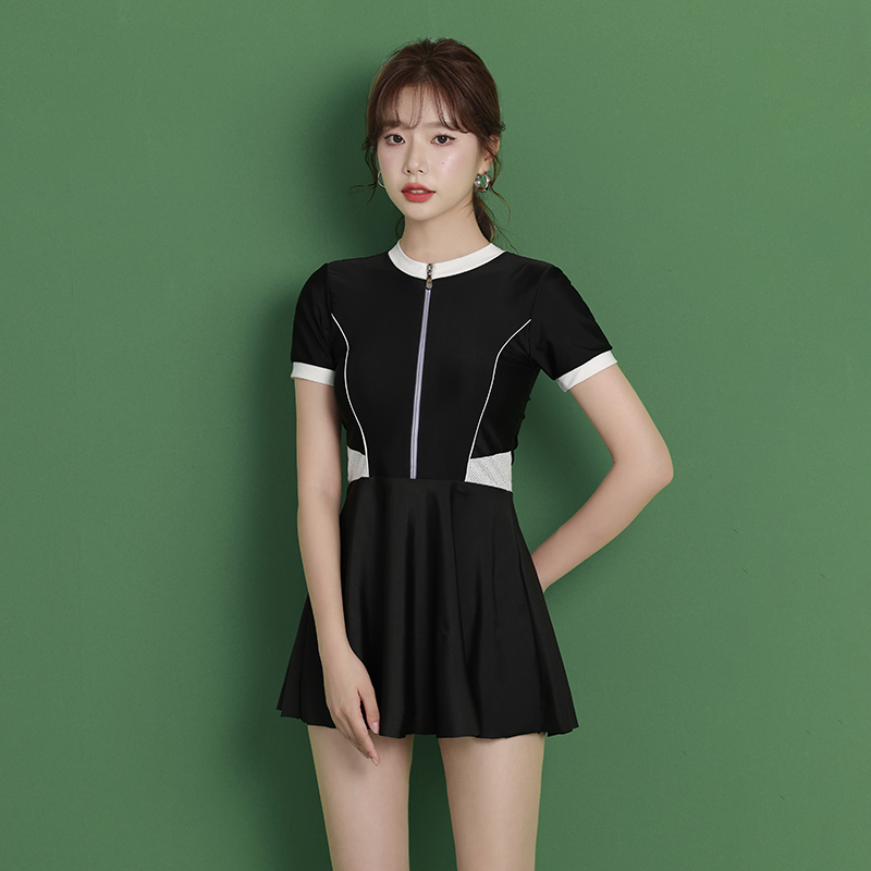Swimsuit women's hot springs show thin and cover belly 2022 new popular one-piece conservative short-sleeved boxer skirt swimwear