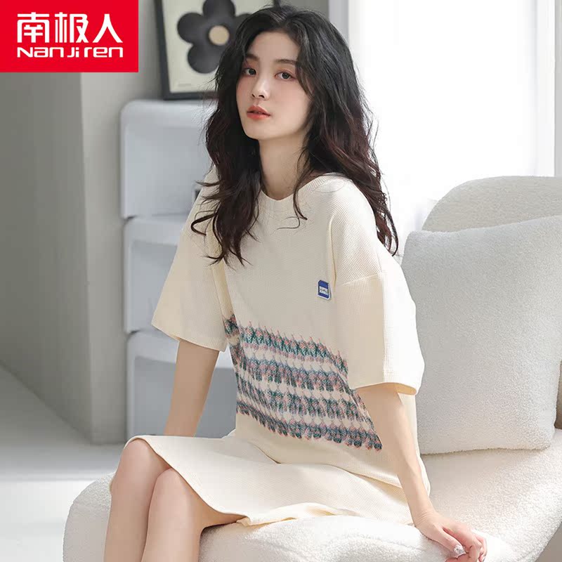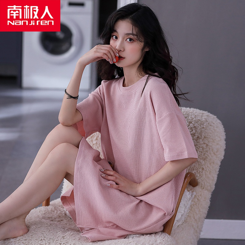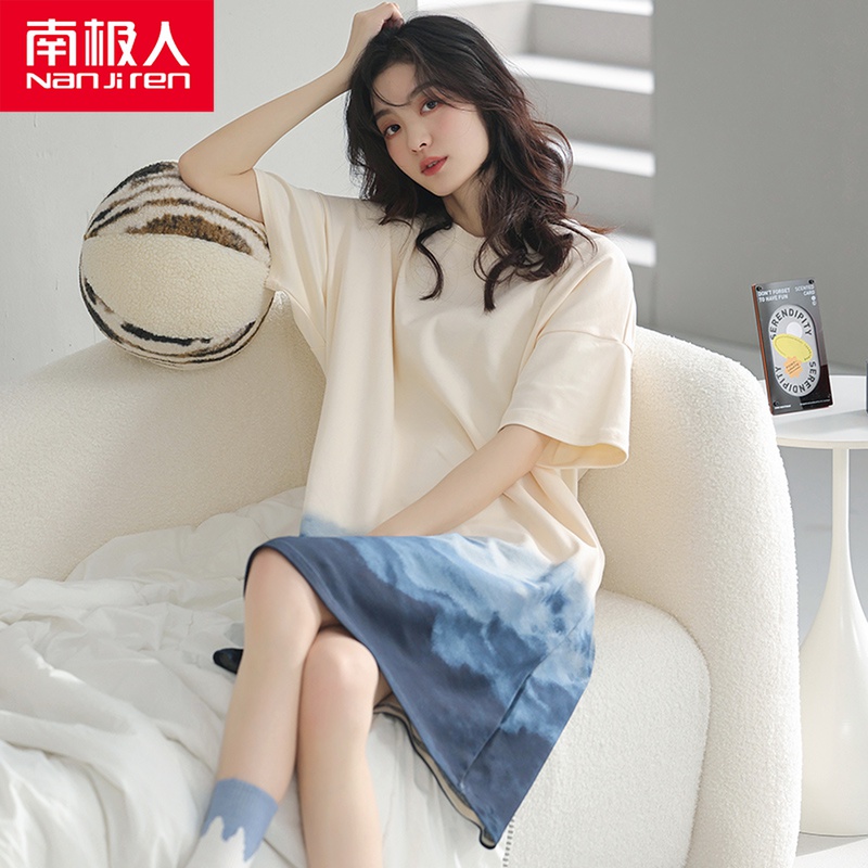Sleeping dress dress Summer thin cotton short sleeve 2022 new summer long pregnant woman loose dress