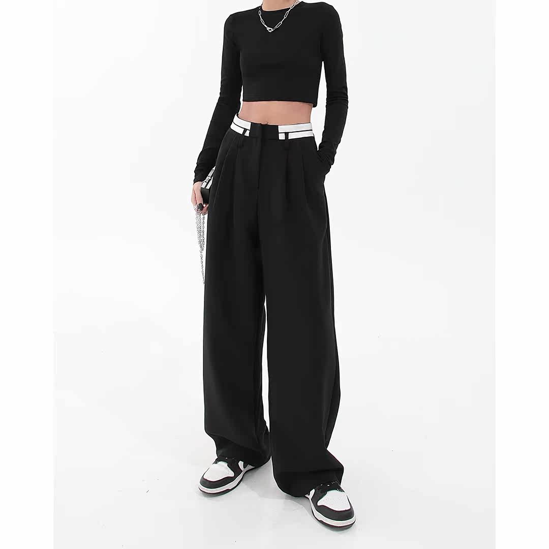European and American High Street Design Sensation Western Pants Woman Summer High Waist Pituitary Pants Slim Fit Slim Black Tug Casual Pants
