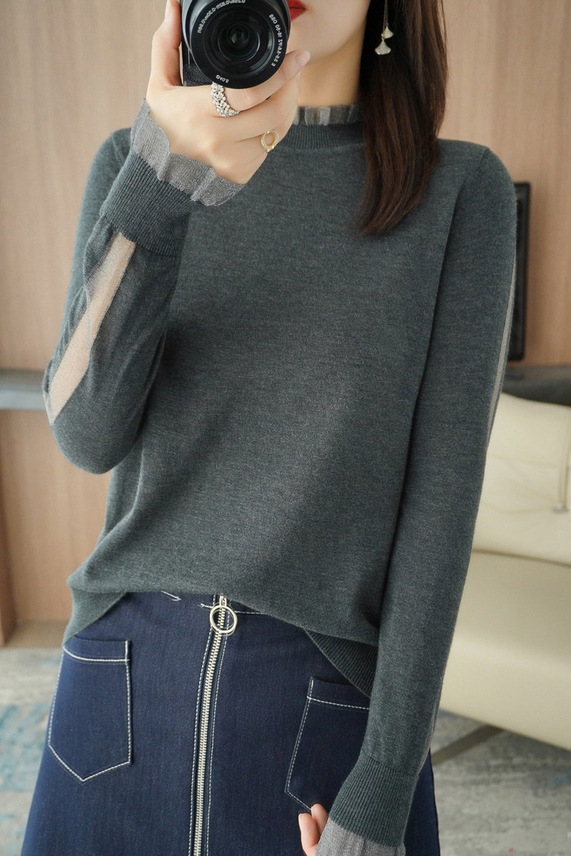 Lace thin Finely Spun Wool Jersey Woman 2022 Spring new half-high round neckline headsweaters knitted sweater