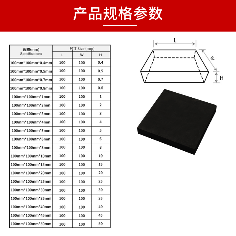 200*100*2mm mm high-purity graphite plate 200*100*3mm mm high-purity graphite plate 200*100*4mm mm high-purity graphite plate