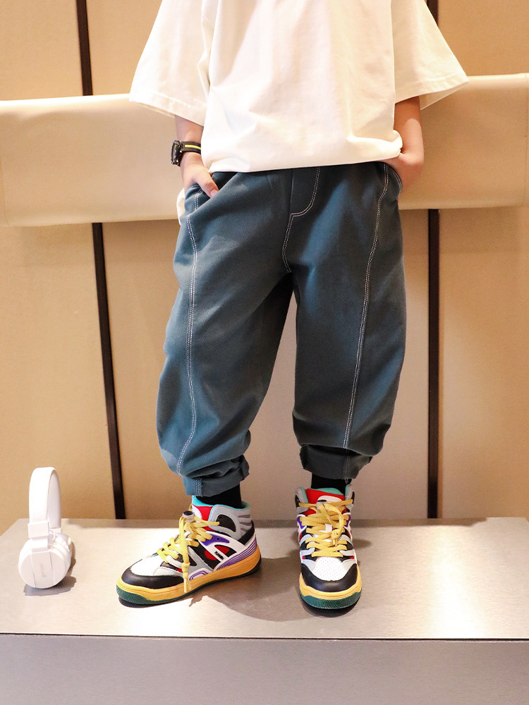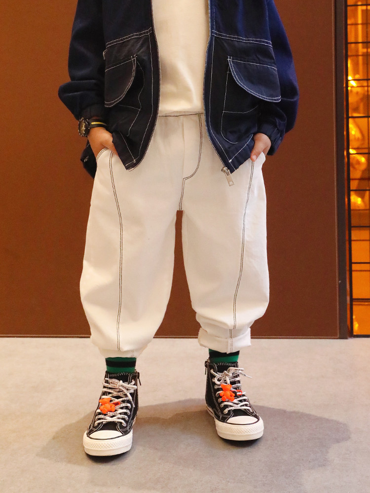 Xiaoweijia 2022 boys' clothing autumn and winter new children's trousers baby fried street Korean version plus velvet Western style casual pants
