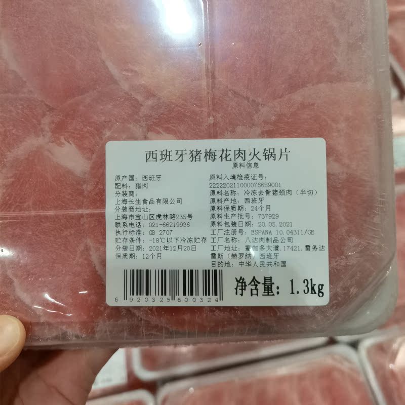 Spanish Pork Plum Pork Hot Pot Slices 1 3KG Shanghai costco