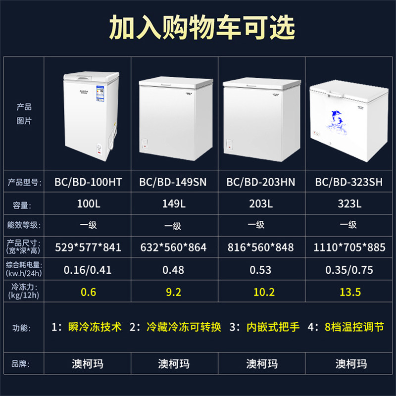100 litres (hot-selling explosion) refrigeration 149 litres (refrigeration freeze) 203 litres (refrigeration frozen) 256 litres (refrigeration and frozen)323 litres (refrigeration and frozen)