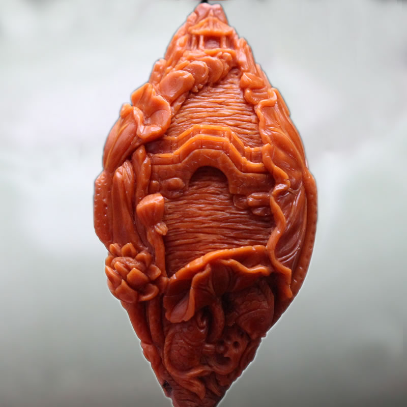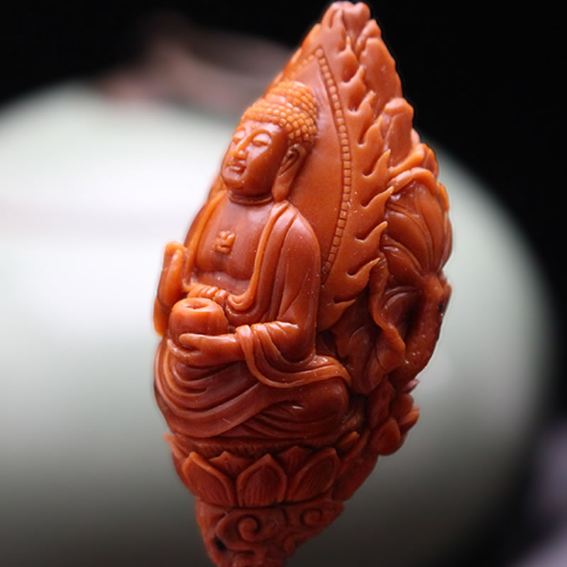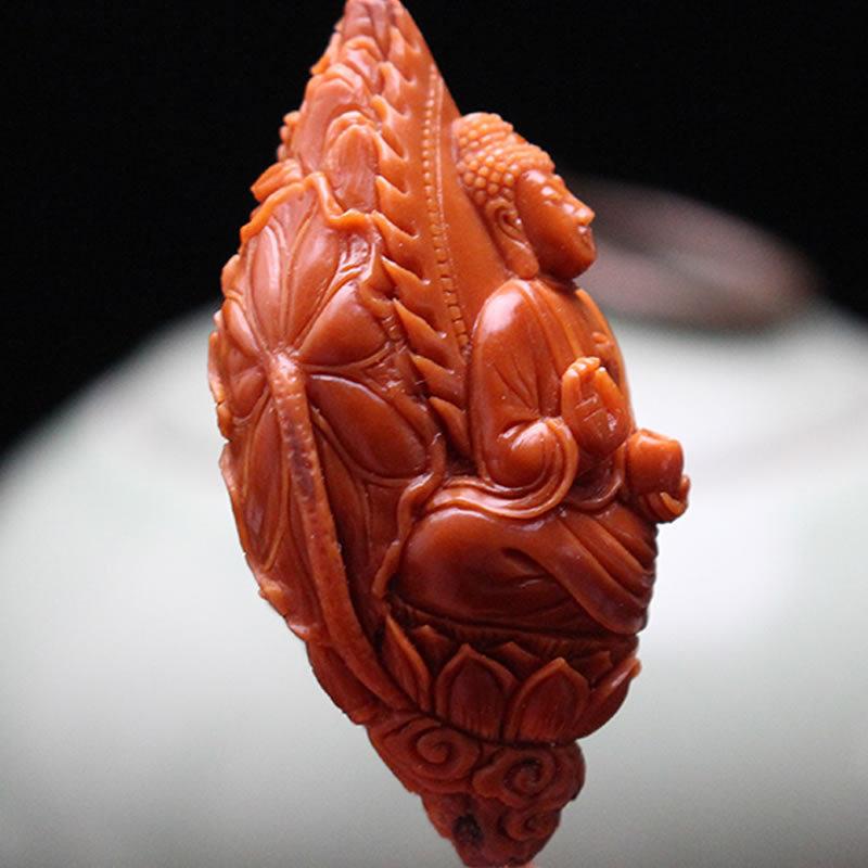 Olive nuclear carving pure hand carving big seed big day scenery Tathagata Buddha olive Hu boutique single seed pendant handle piece