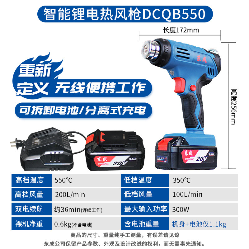 Dongcheng rechargeable hot wind gun lithium electric hot blower DCQB550 portable wireless plastic welding gun heating baking gun
