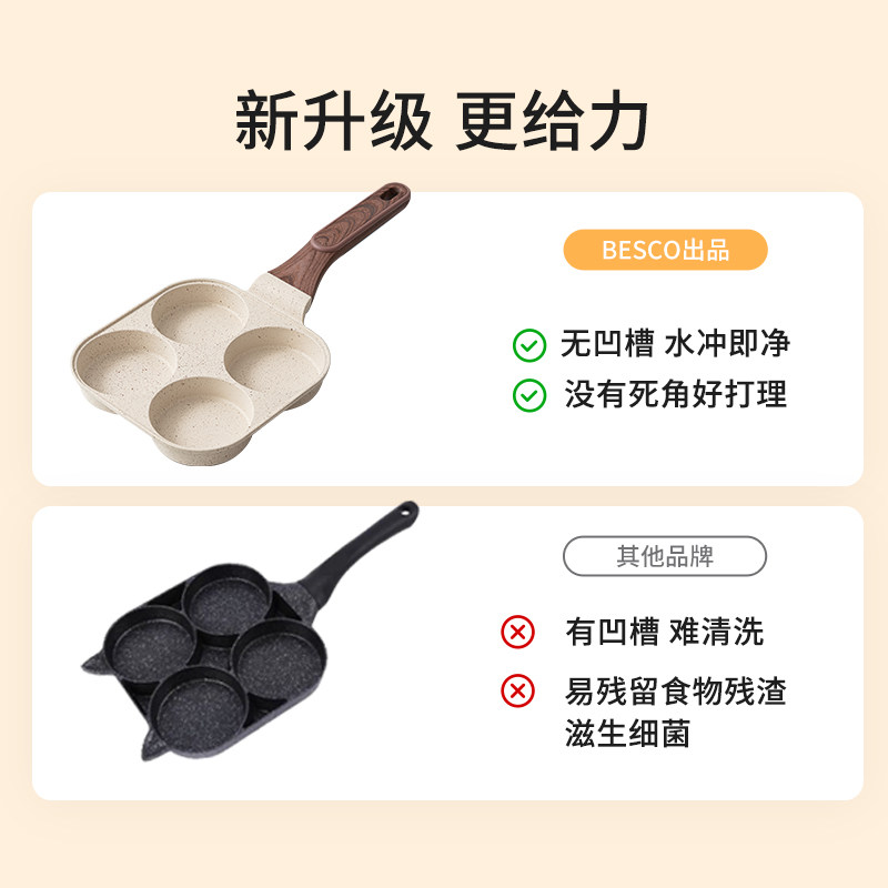 Besco flat-pan omelette burger without sticky pan frying pan household four-hole multi-functional breakfast artifact pan pan pan