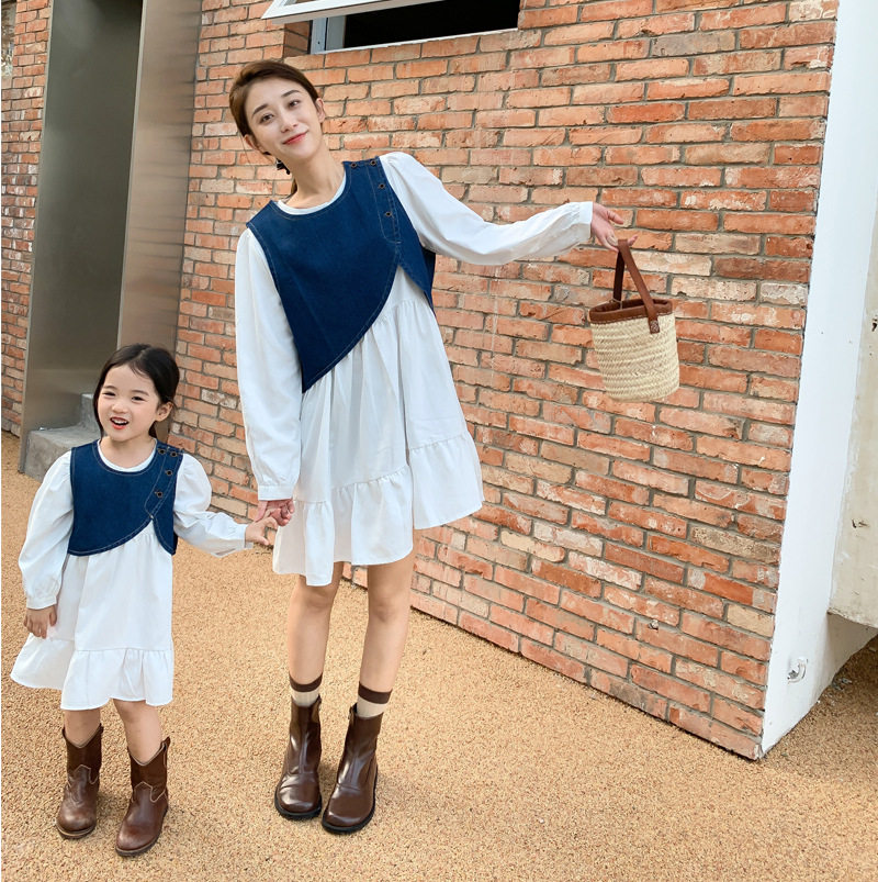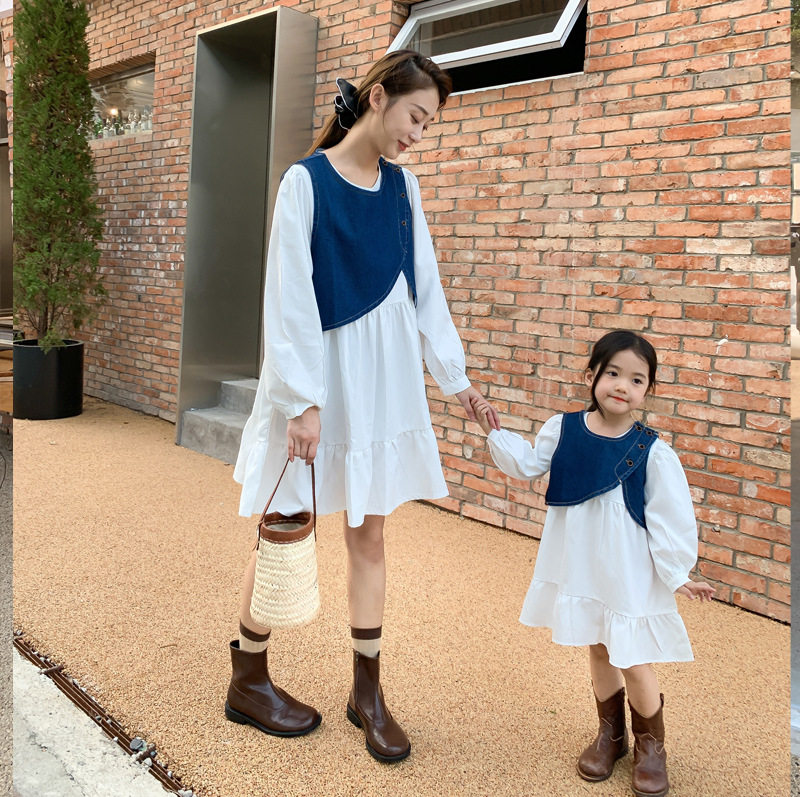 Fried street parent-child dress mother and daughter 2022 spring new denim vest dress Western style Korean version two-piece skirt trend