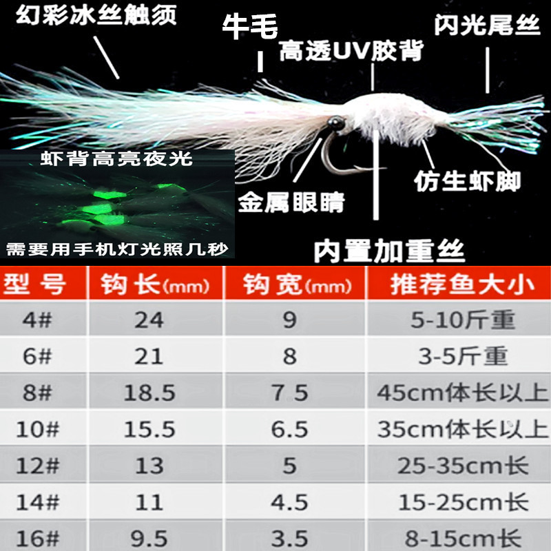 Illianglua (Night Ice Creep - Fly White Shrimp) 4 - 16 # Lua Qing slightly warped white horse bait