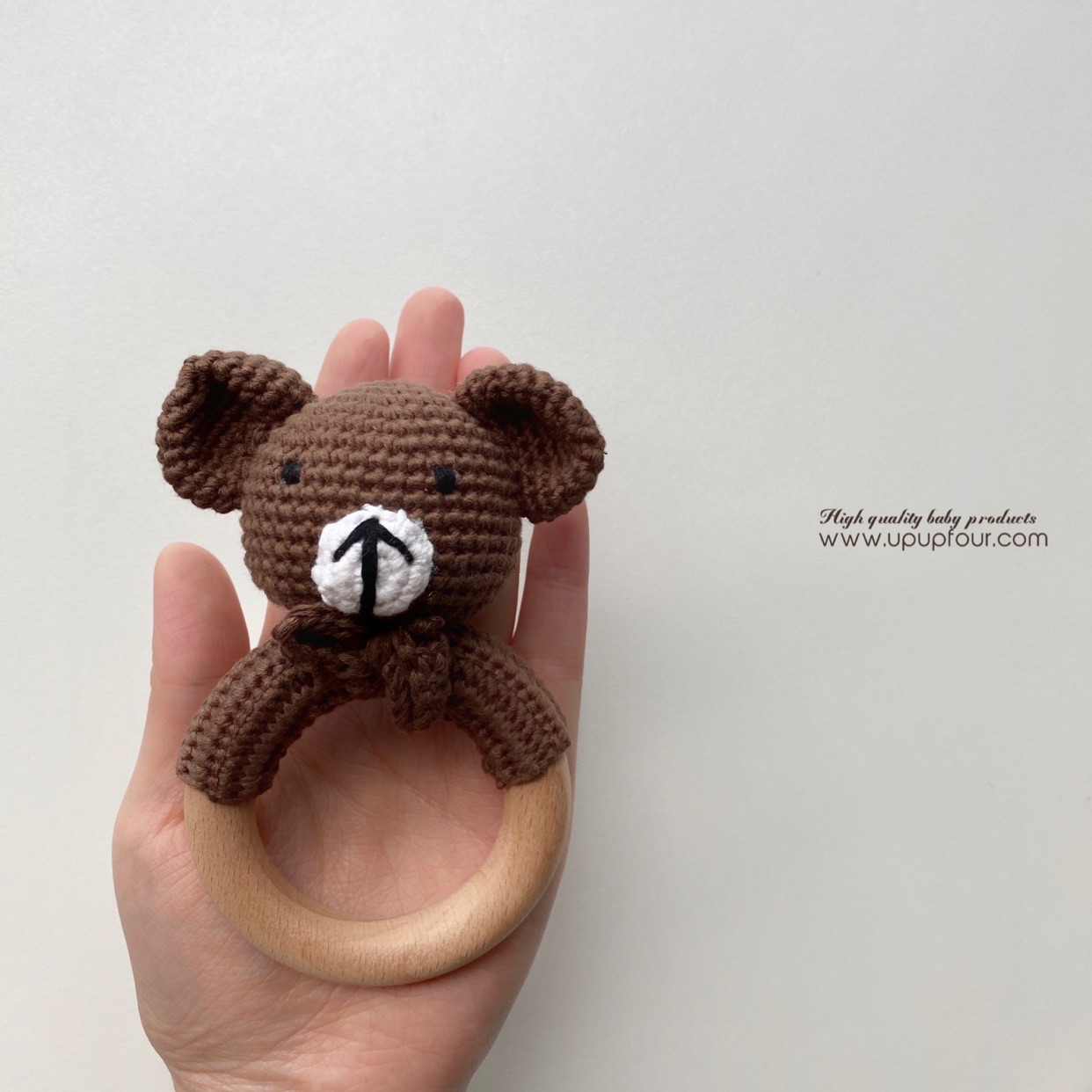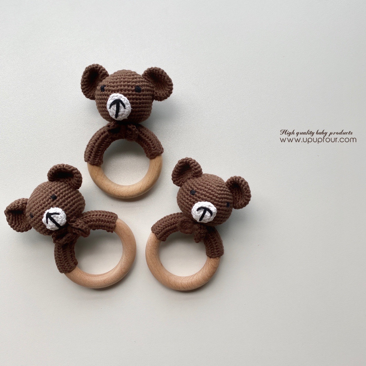 upupfour original hand crochet small bear grindle tooth bite toy baby rattle toy baby soothing toy
