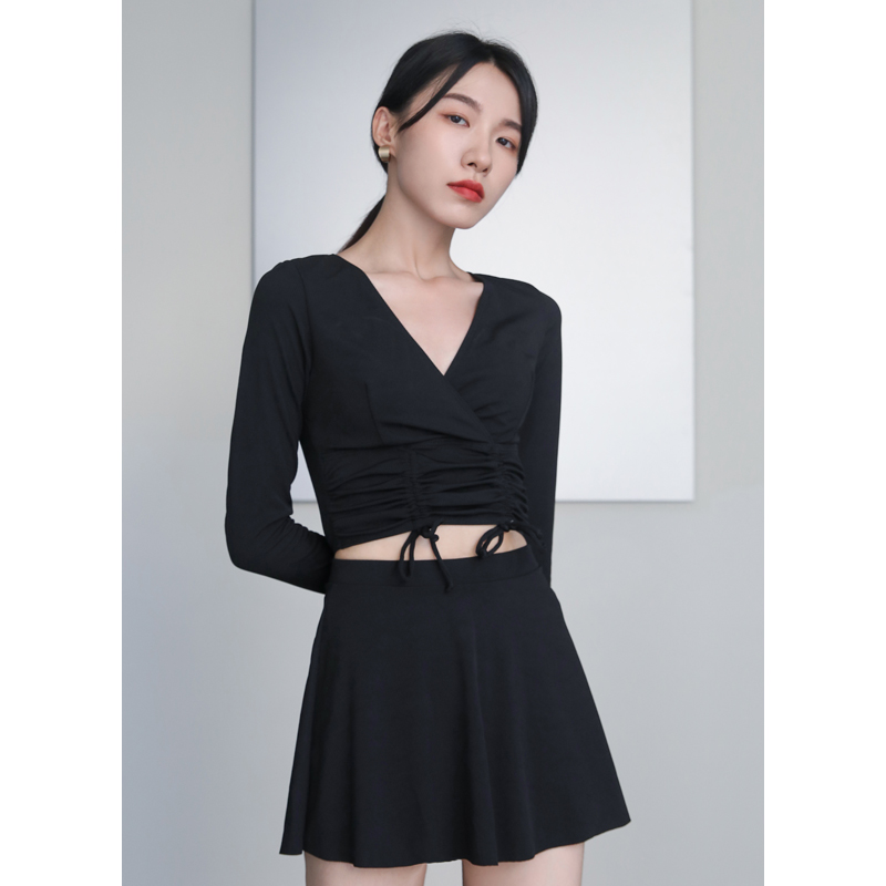 Miss Deer two style long sleeve sunscreen skirt-style cover with slim pear shape conservative foam spa swimsuit female