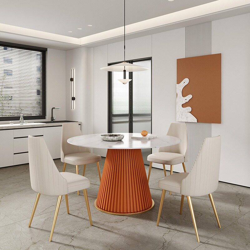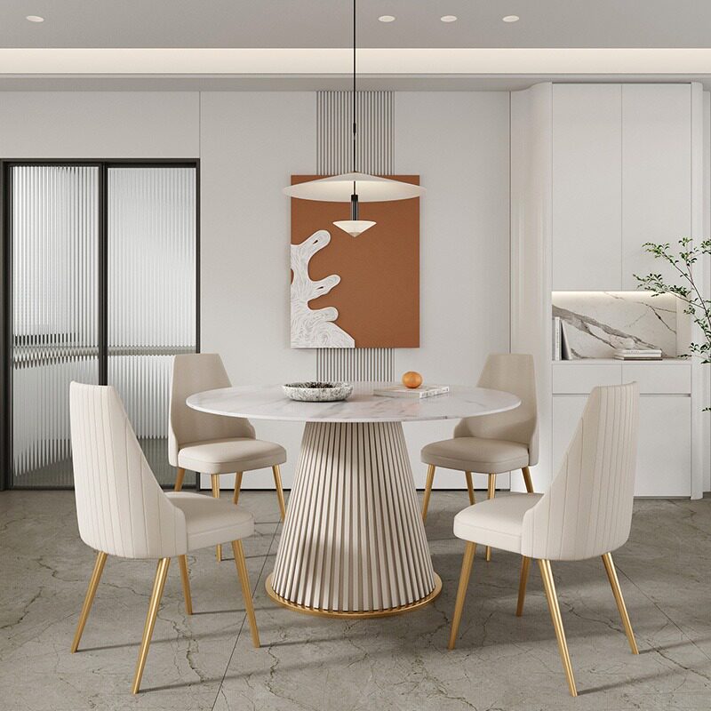 Nordic light luxury marble dining table small apartment home high-end net red dining room rock slab round table one table six chair combination