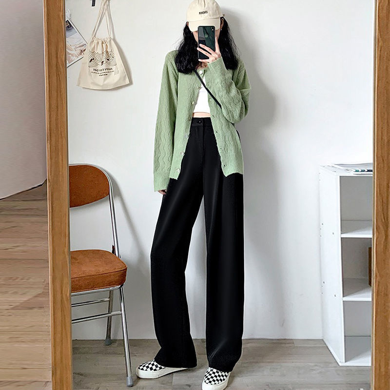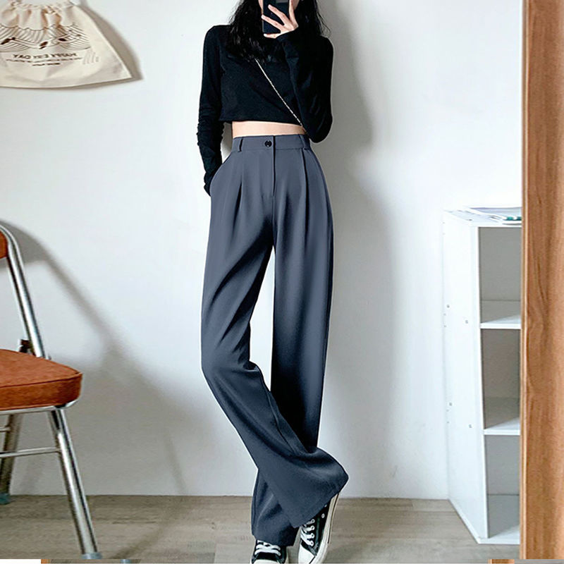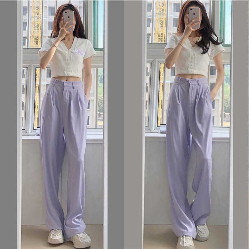 Purple suit pants female straight tube loose high waist and thin high-thin high-level loose straight tube in autumn and winter white and fashionable