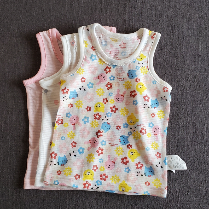 Girl Baby Newborns Sleeveless Vest Pure Cotton A Thin summer cartoon Home Sleeps Air-conditioned Room Vest
