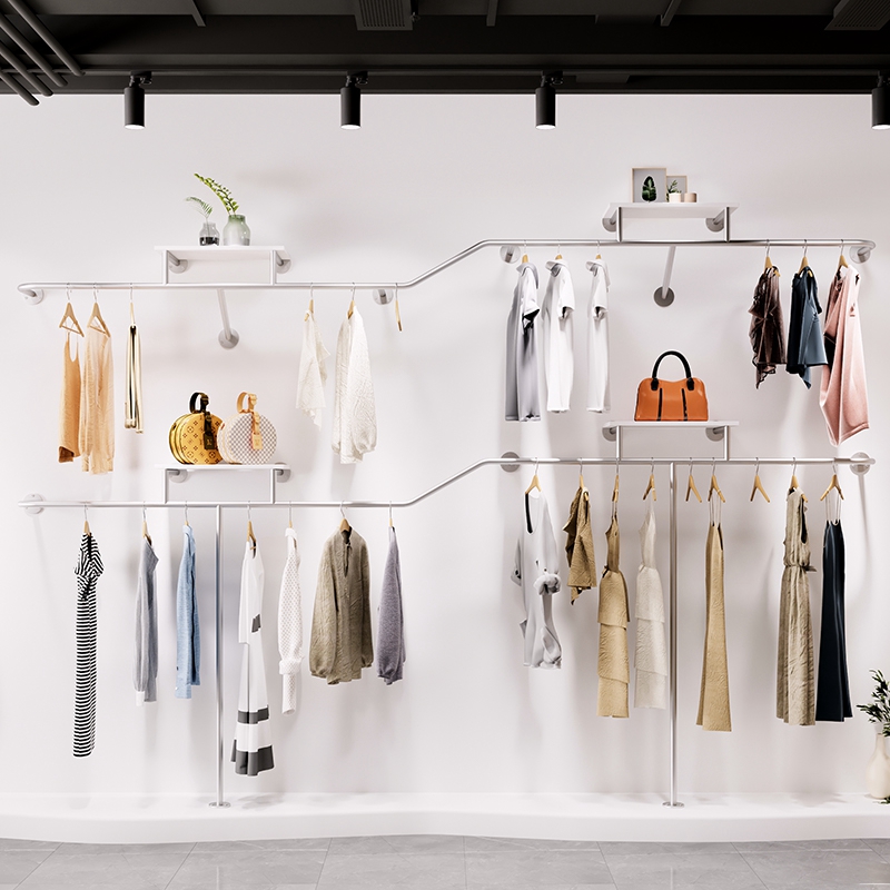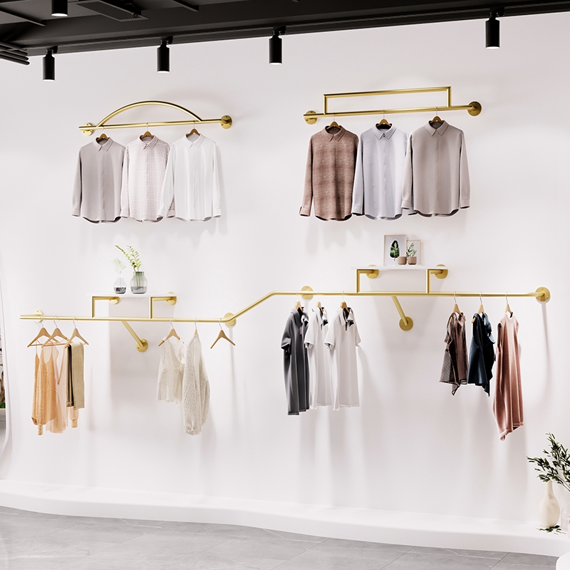 Clothing store display rack on the wall display rack stainless steel men's and women's clothing special store shelf gold and silver clothes rack customization