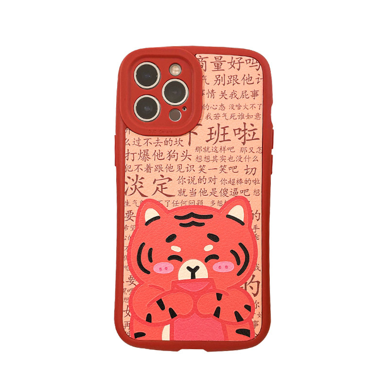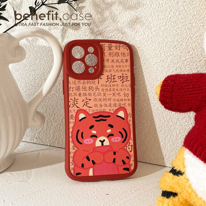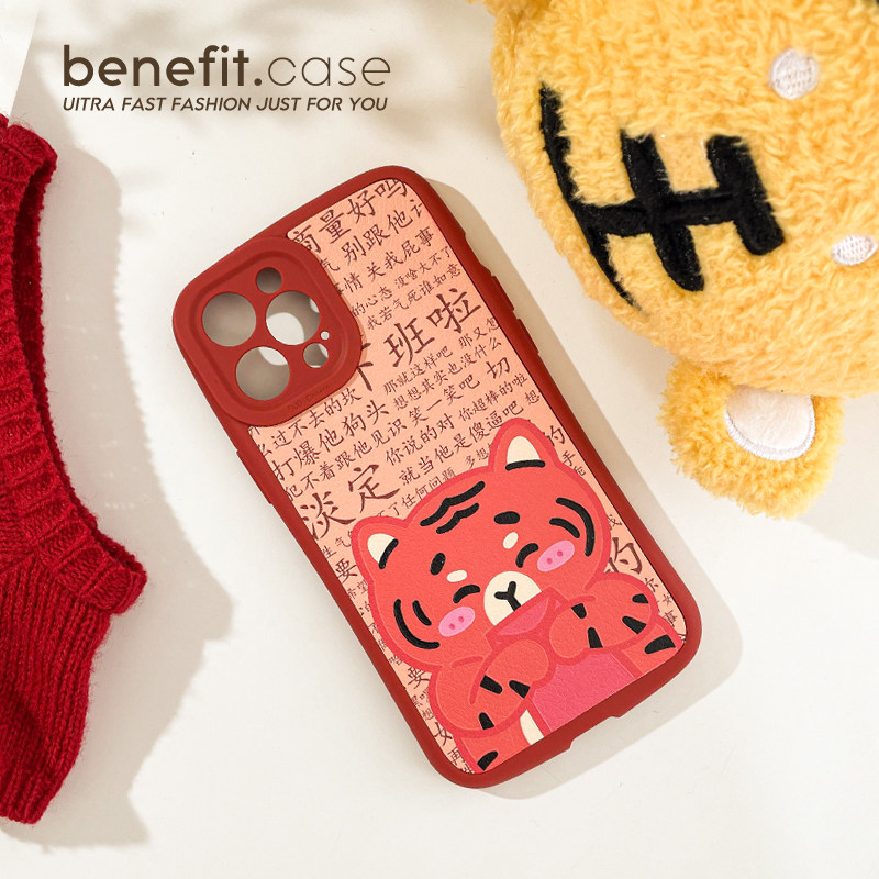 Benefit tiger year text Pale Red Envelope Tiger applies Apple 13promax mobile phone protection shell cute iphone12mini cartoon xsmax creative xr male and female