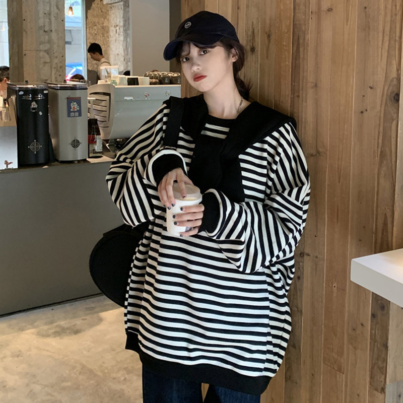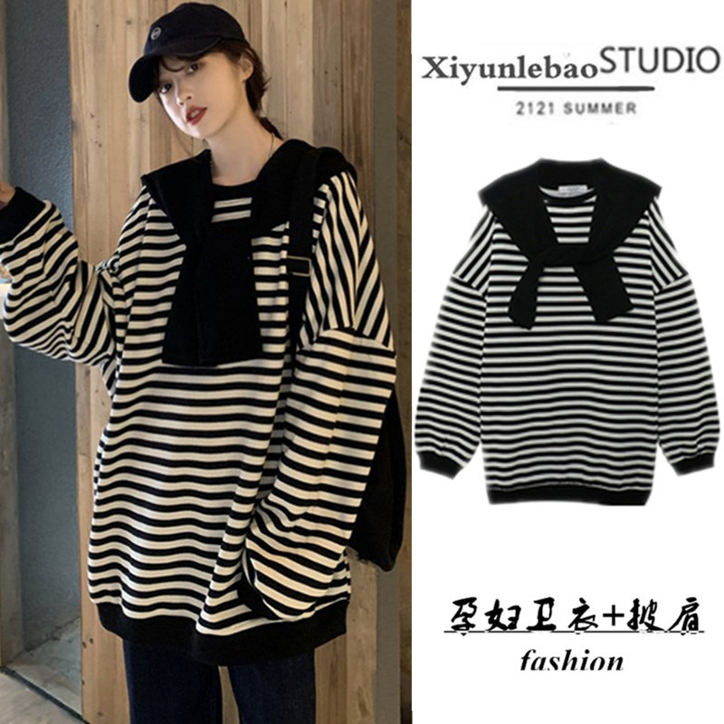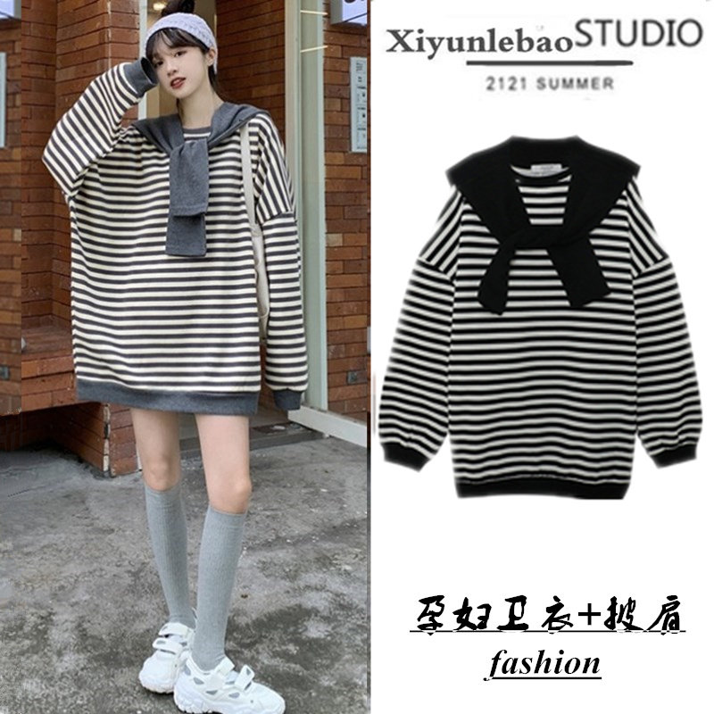 Pregnant Woman Spring Dress Suit Fashion style Large Size Loose Striped Blouse Blouse Spring Long Sleeve Thick Cotton T Female Spring and Autumn Style Long Edition