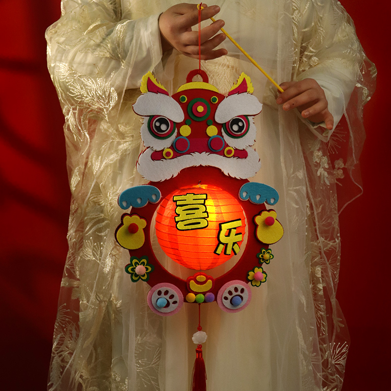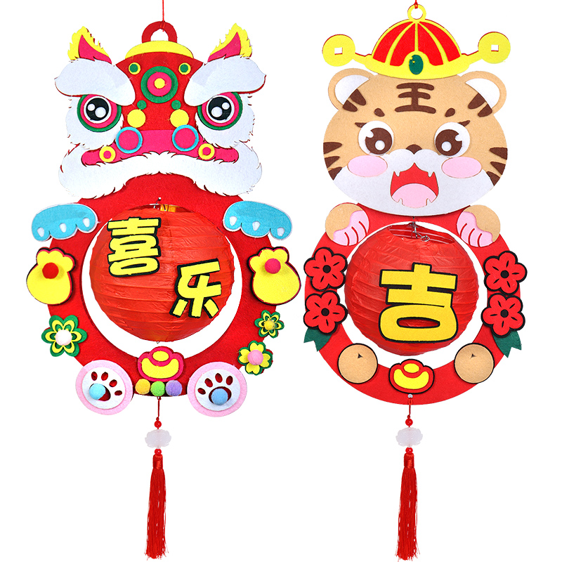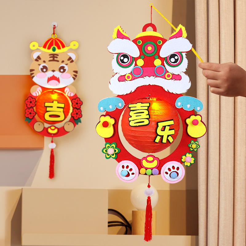 Toddler Artisanal Homework Diy Cartoon Tiger Handheld Luminous Lantern Material Bag New Year Lion Felt Cloth
