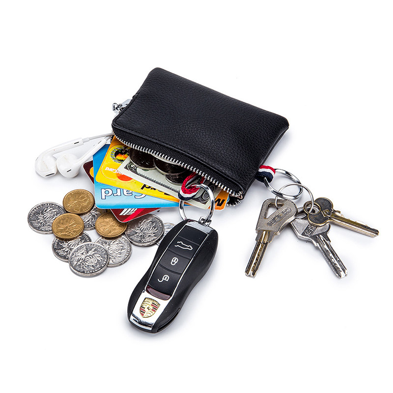 2022 New Genuine Leather Zero Wallet Key Bag Men Mini Small Wallet Pull Chain Coin Driver's License Key Bag Card Bag