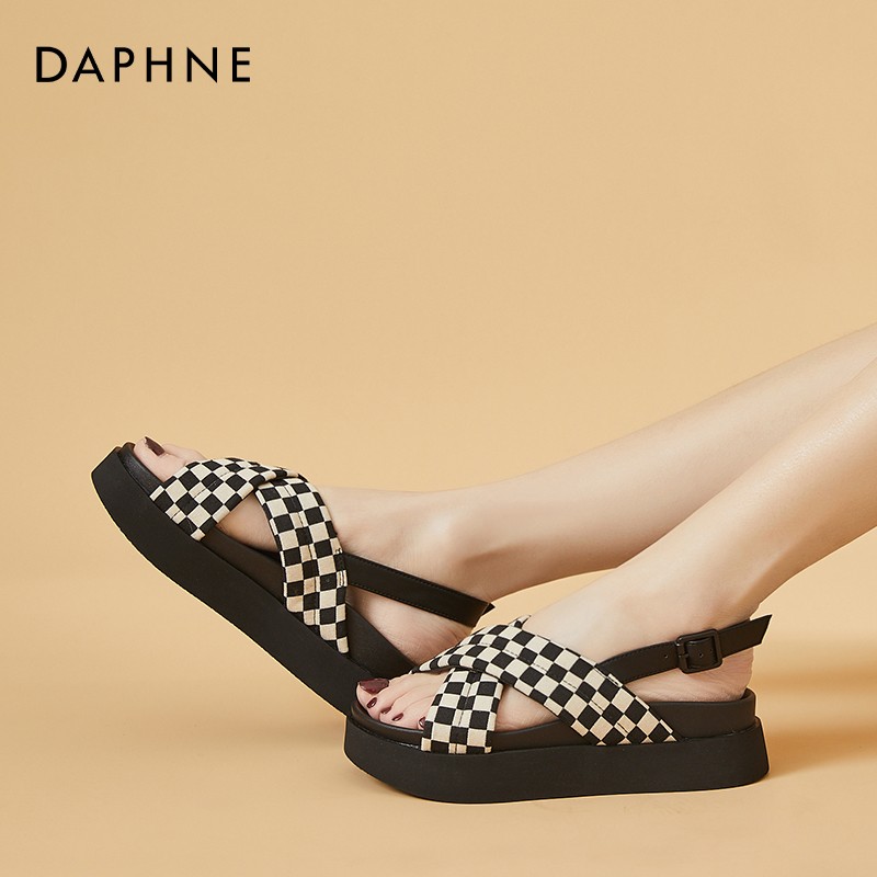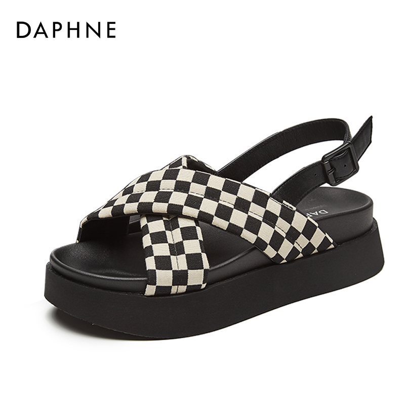 Daphne Thick Bottom Sandals Women's Summer 2022 New Black Two-Wearing Chessboard Grids With Beach Slippers