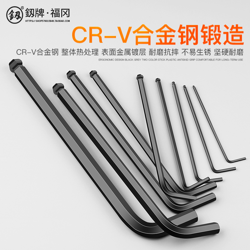 Fukuoka single inner hexagonal wrench hardened single lengthened inner hexagonal 6-angle screwdriver L-shaped extra-long hexagonal tool