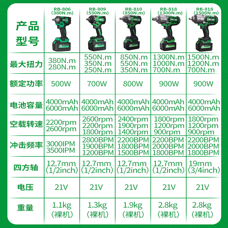 To the revered RB-809 brushless wrench (4 0Ah one electric) A package to the revered RB-809 brushless wrench (4 0Ah two electric) A package to the revered RB-80