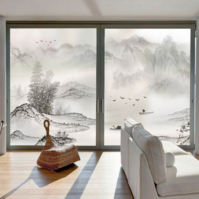 Glass stickers frosted light transmission opaque adhesive film toilet windows Shading Sticker dressing room Decorative Landscape Painting