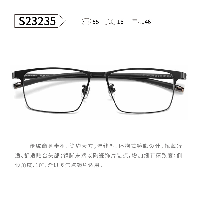 S23235-C28 Black S23235-C35 Gun Color Frame Essilor A3 Aspheric 1 56 Frame Essilor A3 Aspheric 1 60 Frame Essilor