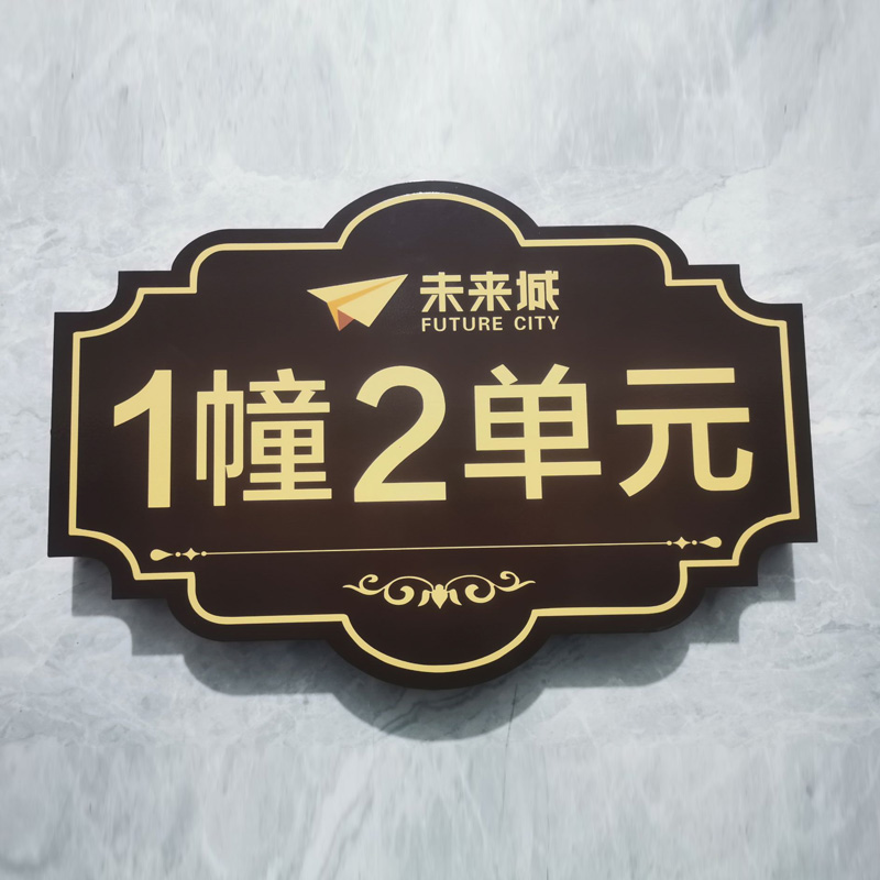 Building brand custom flat paint real estate unit floor label press door building custom logo