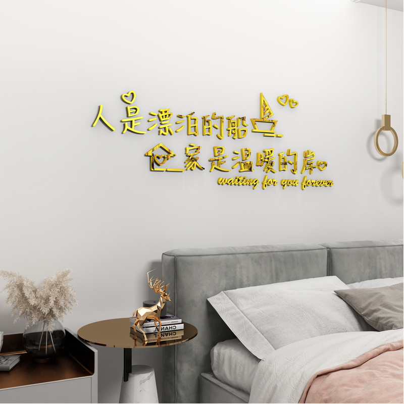 Acrylic 3d Solid wall sticker background arrangement sticker bedroom Living room Guest House Hostel Slogan Warm home Words
