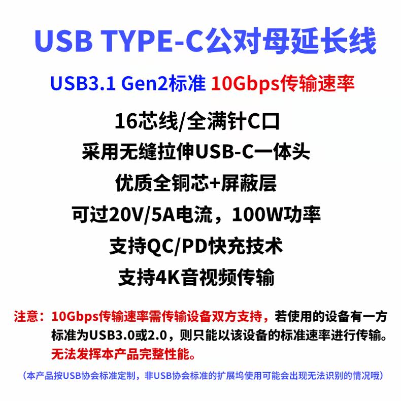 (Straight Front Page) Type-C Public to Mother Extension Line★10Gbps High Speed Transmission of 5 A Large Current (Elbowed Version) Type-C Public to Mother Extension Line★10Gbps High