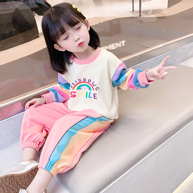 Girls spring and autumn suit 2023 new children's foreign style fashion casual cotton baby autumn sweater two-piece set