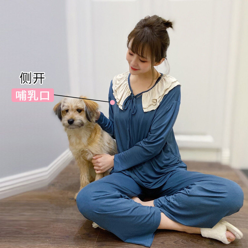 2022 Modale Moon Subsuit Summer thin Postnatal pregnant woman Sleeping lace collar loose with large size for breastfeeding pyjamas