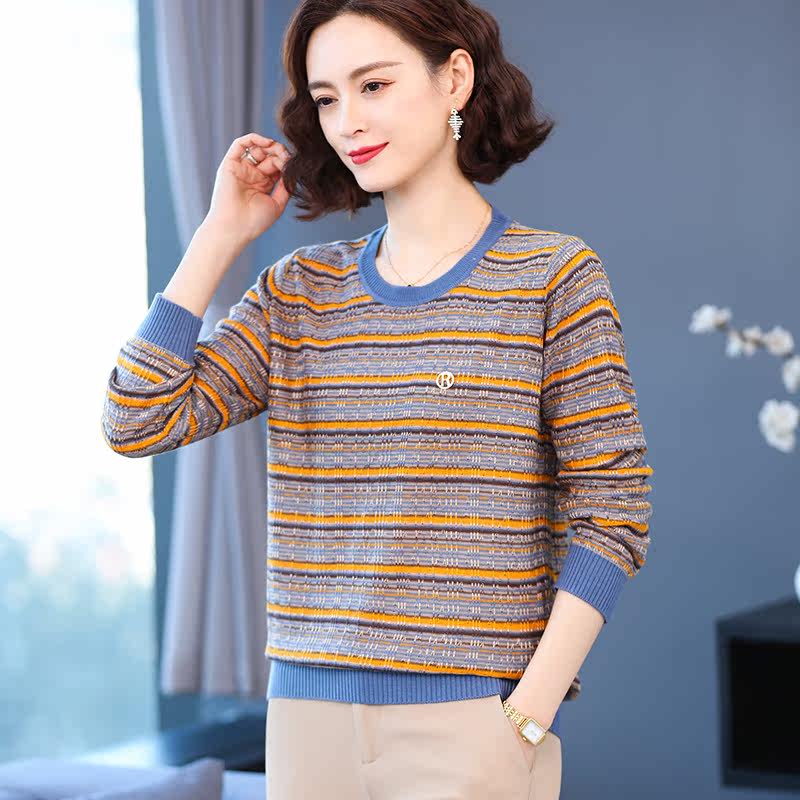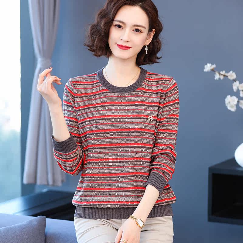 Ordos city mulberry silk early spring blouses women's thin section long sleeves T-shirt loose stripes to beat undershirt spring clothing