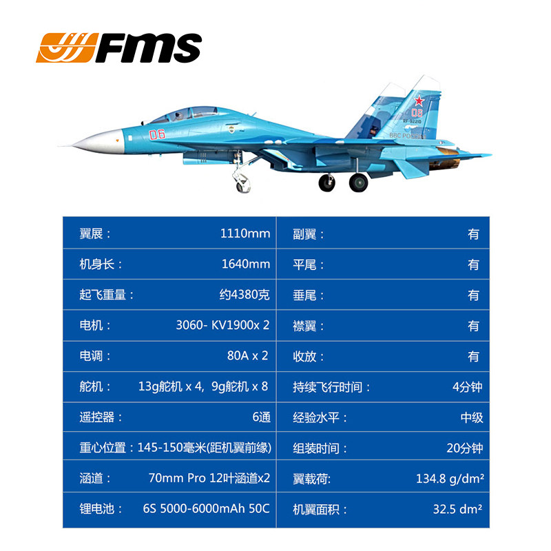 FMS Double 70 ducted SU27 Su 27 Like real air model attack machine electric remote control model fixed wing foam assembly