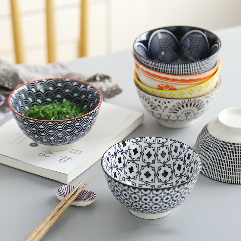 Blue stripe 4 5-inch threaded rice bowl Purple stripe 4 5-inch threaded rice bowl Black pupil 4 5-inch threaded rice bowl Green pupil 4 5-inch threaded rice bowl Shallow six-in 4 5-inch threaded rice bowl Deep six-in 4