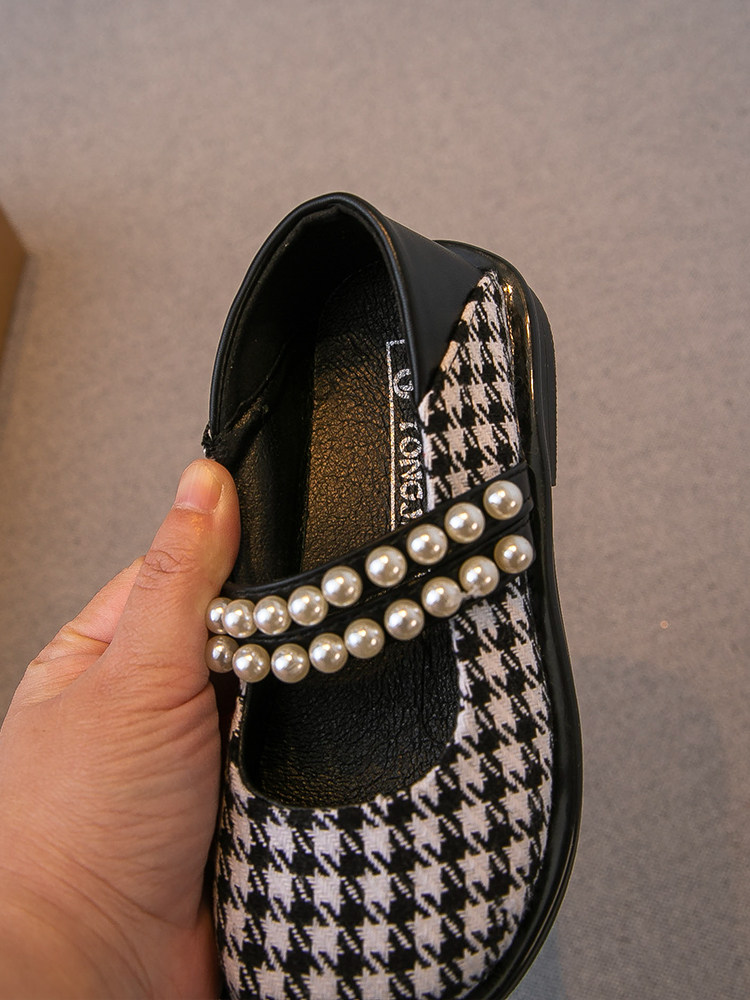 South Korean children's clothing 2022 Spring and autumn new girl Inn popular temperament Thousand Birds Gummy Bean Shoes Girl Nails Pearl Single Shoes
