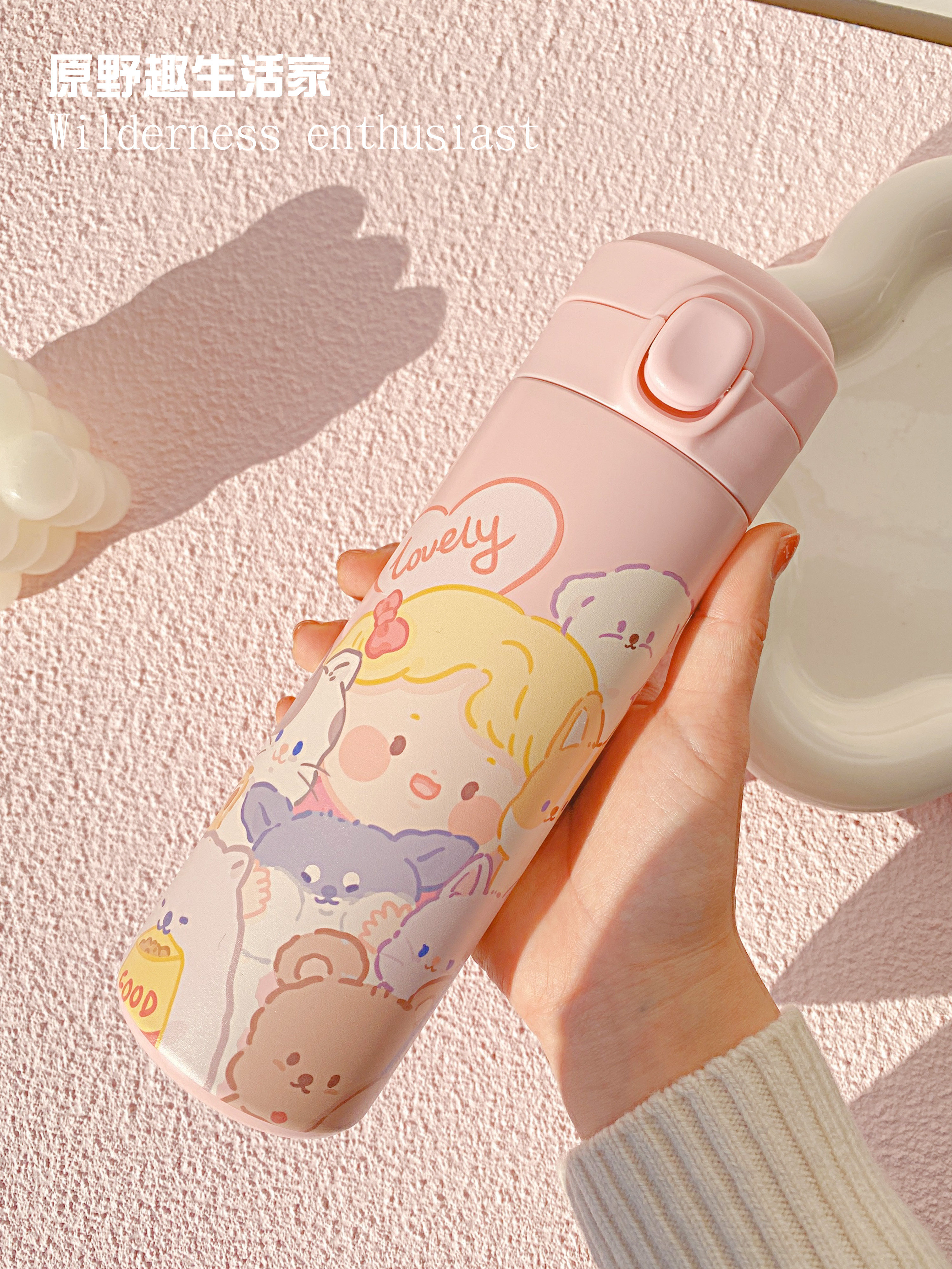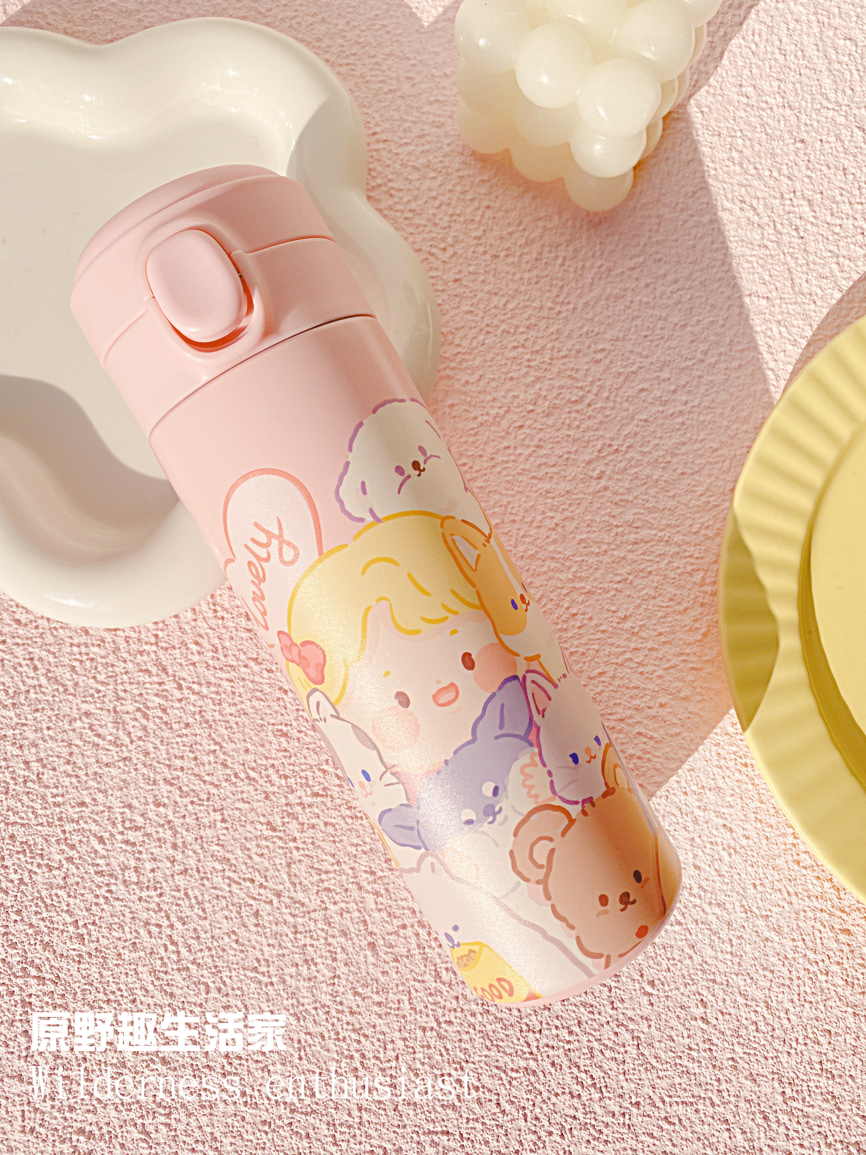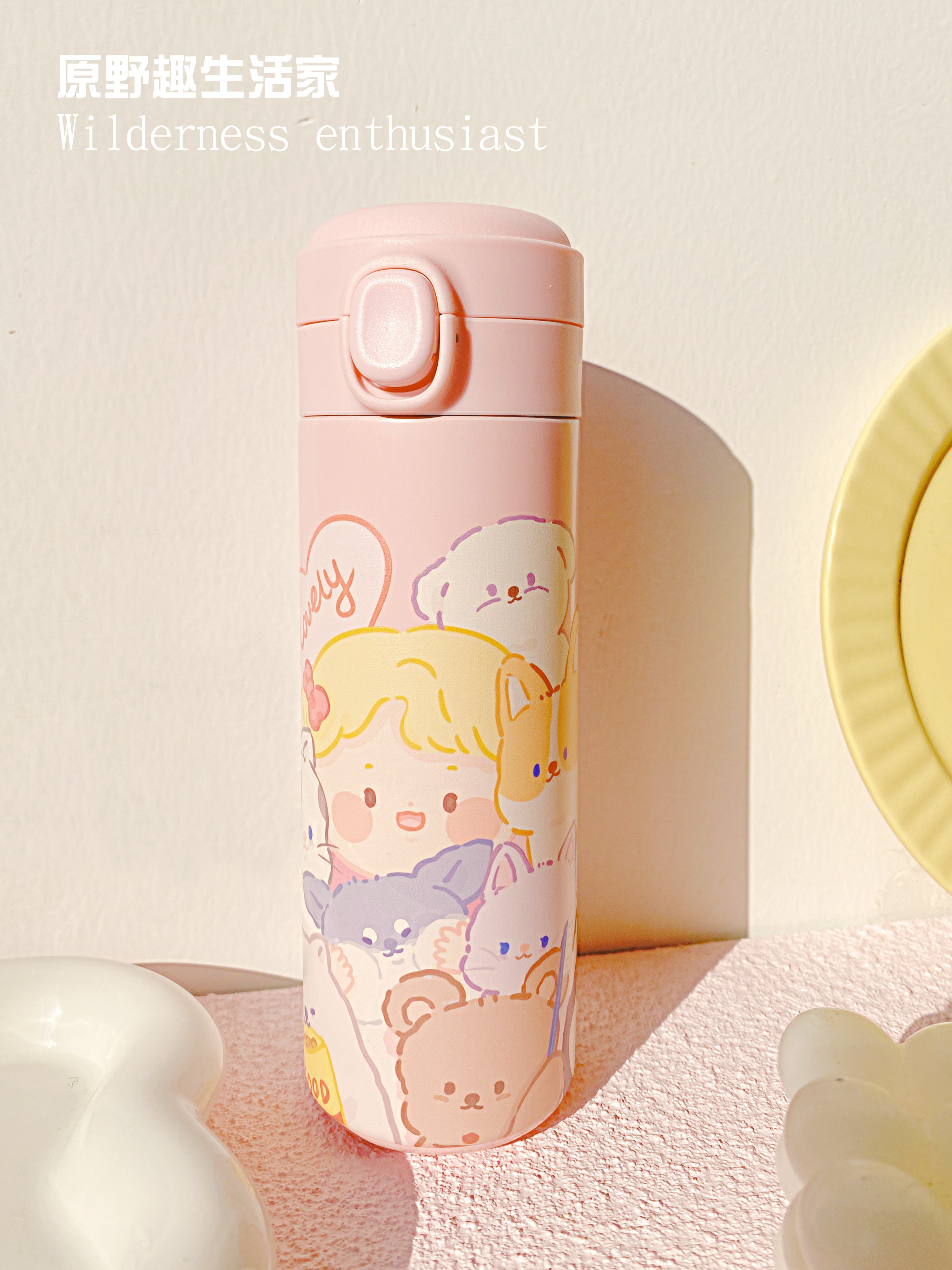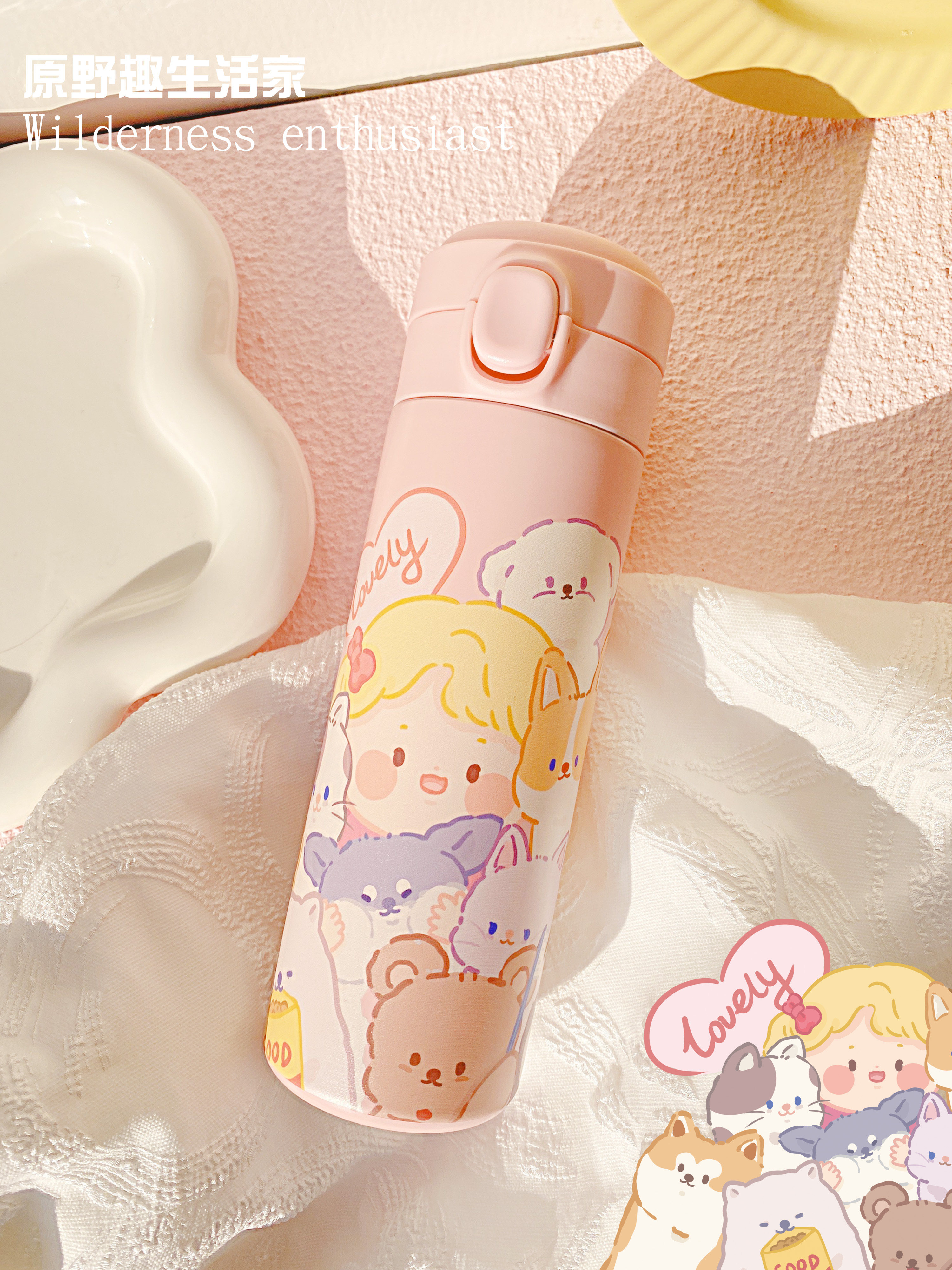 Original Wild Fun Living Home Original Small Animal Insulation Cup Straight Body Cup Large Capacity 304 Stainless Steel Insulated Pot Cute