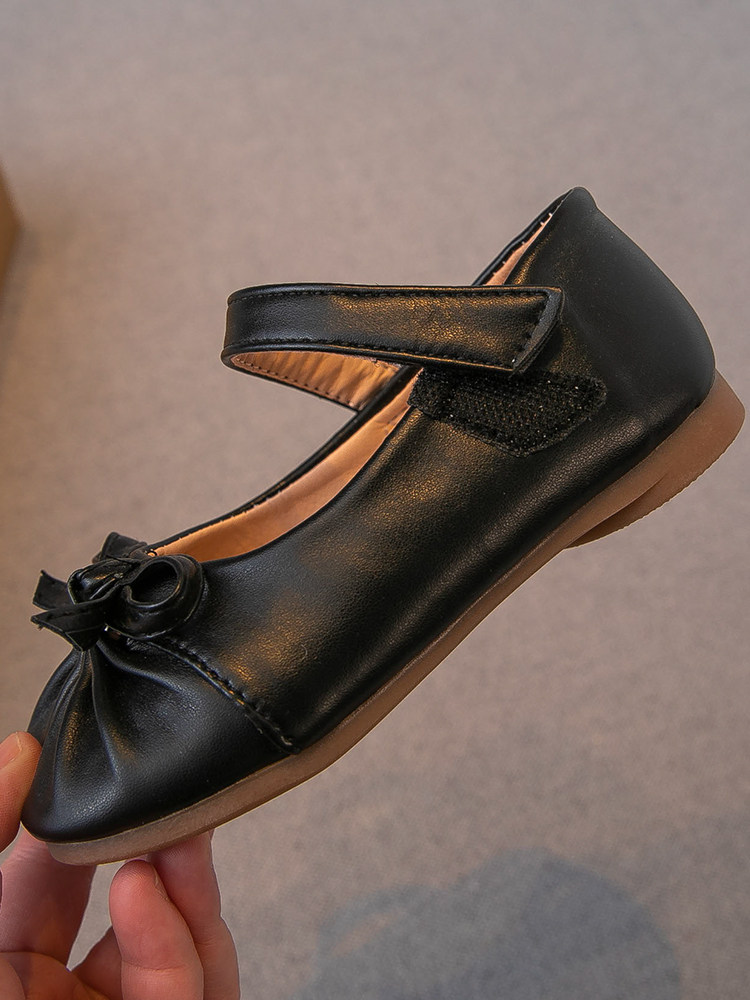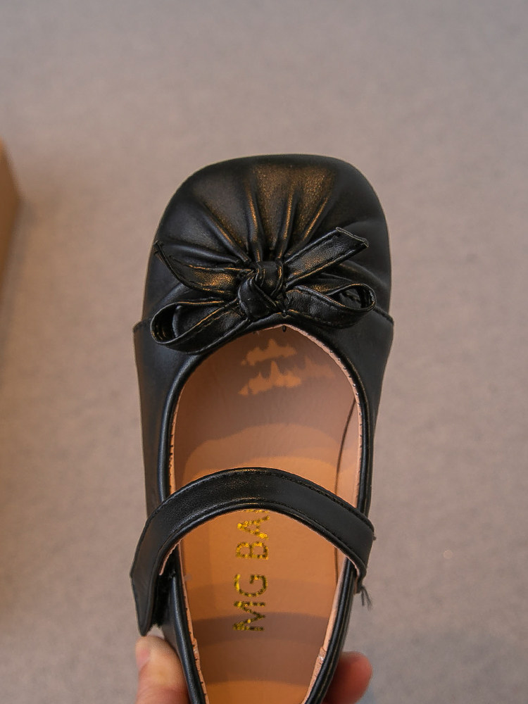 South Korean girl's genuine leather performance fashion small black shoes 2022 Spring and autumn new women's baby flat beans with small leather shoes