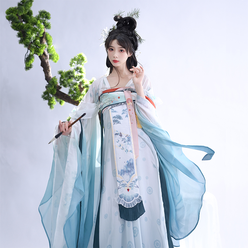 Han Fengyin (Fufeng) Northern and Southern Dynasties large-sleeved jacket cross skirt printed embroidery Hanfu new elegant and original chest-length