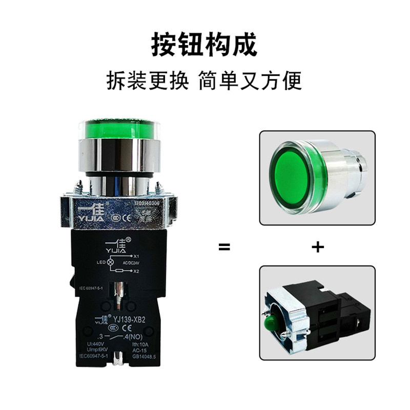 One Canon metal LED with lamp self-reset switch XB2-10DN self-lock point motion button 12V24V220V380V